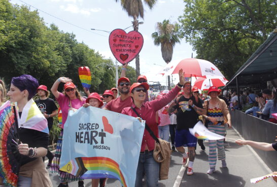 The streets of St Kilda were bursting with colour, music and cheering crowds last Sunday for Midsumma Pride March, and right in the middle of it all were more than 60 Sacred Heart Mission staff, volunteers, friends and family.