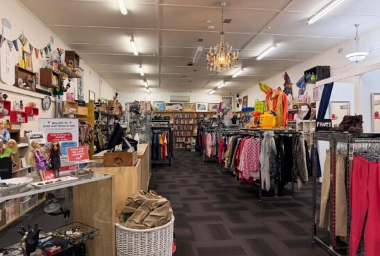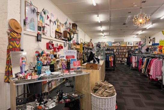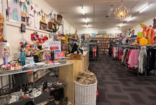 With fabulous window displays full of antiques and bric-a-brac, the store also boasts a large book section, linen and haberdashery nook. With glass cabinets full of antiques and jewellery, it’s easy to spend hours in this op shop!