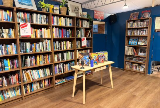 Housed in a beautiful building with high ceilings and vintage charm, this new space rolls out the red carpet with an elegant, welcoming feel. With hints of blue and gold, vintage railway bag holders, and warm timber counters and displays, this op shop is as classy as its community.